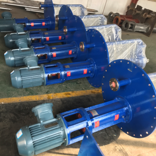 二、结构说明:YZ(G)型泵为单级, 单吸悬臂式结构,用轴承座,支承座,联接管连接泵的水力部件,液体由出液管部件排出,泵的叶轮为半开式叶轮,在叶轮叶片进口延伸处设有搅拌叶片,该泵主要特点是在液下部件的泵轴,有足够的刚度,叶轮,泵壳之间不设轴承,不采用轴封,可以输送含有较大浓度固体颗粒的介质。泵插入液下的长度在800-3000之间,如果需要可以配带吸入管。轴封采用液下泵插入液体中运行,不设轴封,传动由立式电动机安装在电机支承座上,用联轴器与泵相连。