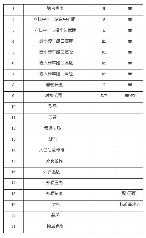 液化气鹤管鹤管(陆用流体装卸臂)基本参数