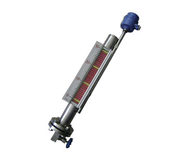 ◆液位计安装完毕后,需要用磁钢进行校正,对翻柱导引一次使零位以下显示红色,零位以上显示白色。